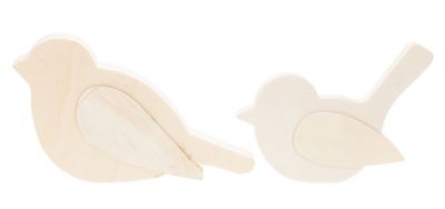 Vögel aus Holz, mit aufgeklebten Flügeln, zum individuellen Bemalen und Gestalten, Größe: 12,5 cm und 16,5 cm, Inhalt: 2 Stück.