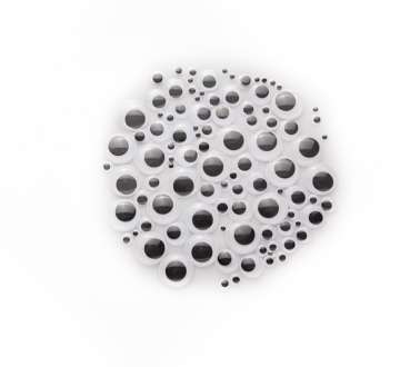 Wackelaugen, selbstklebend, Farbe: schwarz, Größe: 5–20 mm Ø, Inhalt: 100 Stück.