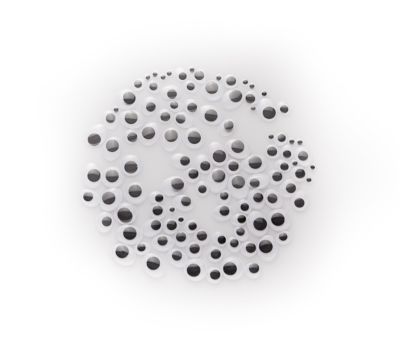 Wackelaugen zum Aufkleben, oval und rund, Farbe: schwarz, Größe: 5–16 mm, Inhalt: 100 Stück.
