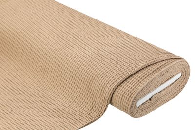 Waffelpiqué, Farbe: hellbraun, Kästchengröße: ca. 10 x 7 mm, Breite: 150 cm, Gewicht: ca. 250 g/m². Einlaufwerte: ca. 5 % in Länge und Breite. Material: 100 % Baumwolle.