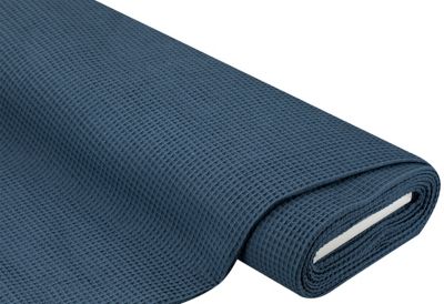 Waffelpiqué, Farbe: jeansblau, Kästchengröße: ca. 10 x 7 mm, Breite: 150 cm, Gewicht: ca. 250 g/m². Einlaufwerte: ca. 5 % in Länge und Breite. Material: 100 % Baumwolle.