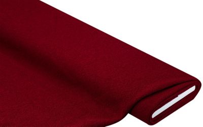 Hochwertiger Walkloden "Peter" aus reiner Wolle, Farbe: purpurrot, gewalkt, Stärke: ca. 3 mm, Breite: 140 cm, Gewicht: ca. 385 g/m². Material: 100 % Wolle.