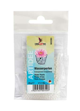 Wasserperlen, Farbe: transparent, Größe: 10–12 mm nach dem Aufquellen, Inhalt: 25 g.