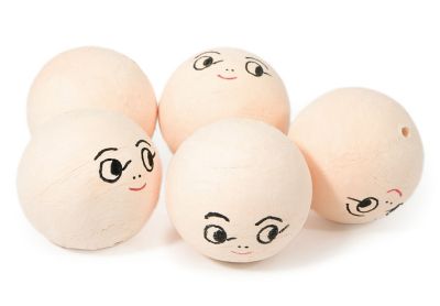 Wattekugeln mit Gesicht, geeignet zum Basteln der unterschiedlichsten Figuren und Puppen, Größe: 50 mm Ø, Inhalt: 5 Stück.