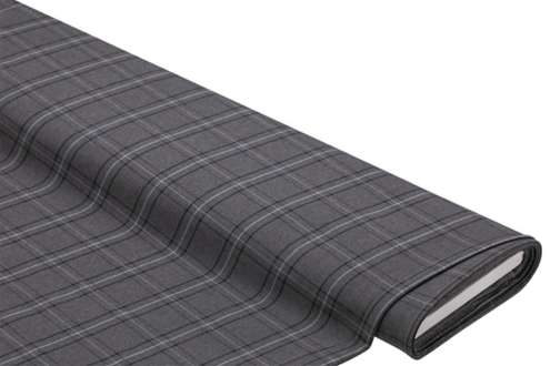 Webstoff "Karo", Farbe: grau-schwarz, Motivgröße Karo: 5 x 6 cm, Breite: 140 cm, Gewicht: ca. 235 g/m². Material: 40 % Viskose, 37 % Polyester, 20 % Polyamid, 3 % Elasthan.