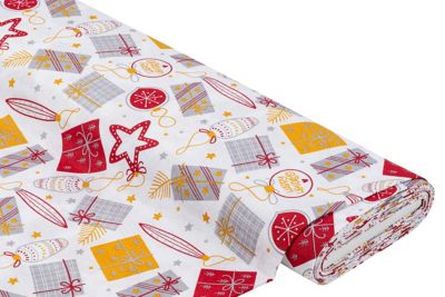 Weihnachtlicher Dekostoff Geschenke & Sterne "Lorena", weiß-color