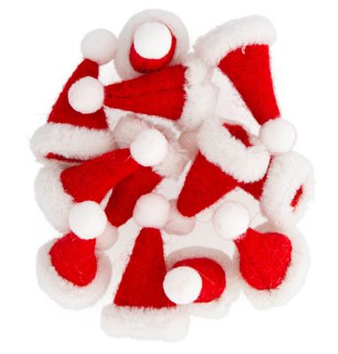 Weihnachtsmützen aus Filz, mit weißem Fellimitat und Pompon verziert, Farbe: rot-weiß, Größen: 6 cm hoch, 2,5 cm Ø, Inhalt: 12 Stück. Material: 100 % Polyester.