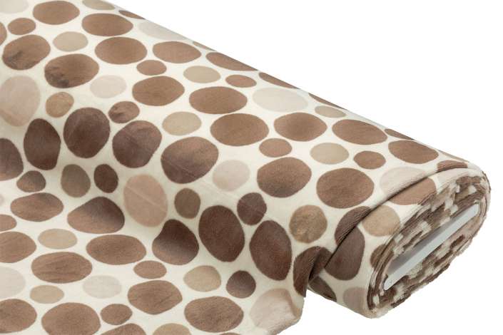 Kuscheliges Wellness-Fleece "Punkte", Farbe: braun-color, Motivgröße Punkt groß: 6 cm Ø, Florhöhe: 7 mm, Breite: 150 cm, Gewicht: ca. 290 g/m². Material: 100 % Polyester.