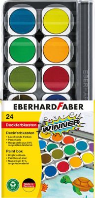 Winner Deckfarbkasten, Farbe: bunt, Inhalt: 24 leuchtende Deckfarben und 1 Deckweiß, inkl. Pinselfach, abnehmbarer transparenter Deckel. Hergestellt aus 51 % recyceltem Material. Für Kinder ab 3 Jahren geeignet.