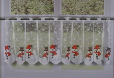 Kurzgardine "Schneemann", Farbe: weiß-color, Motivgröße Schneemann mit Zylinder: 8 x 16 cm, Höhe: 50 cm, Breite: 140 cm, Gewicht: ca. 55 g/m². Material: 100 % Polyester.