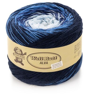 Woll Butt Alva, , blau color. Ein Dreieckstuch aus einem einzigen Knäuel – Woll Butt Alva macht's möglich! Jeder 200-Gramm-Knäuel, auch Bobbel genannt, besteht aus einem langen Farbrapport und reicht für ein wunderschönes winterliches Tuch; die Anleitung dafür finden Sie auf der Innenseite der Banderole. So können Sie direkt mit dem Stricken loslegen! Das Garn mit 50 Prozent Schurwolle ist warm, leicht und weich – ein echter Halsschmeichler. Ob Sie von innen nach außen oder von außen nach innen stricken möchten, liegt ganz bei Ihnen – entscheiden Sie selbst, wie Ihnen der Farbverlauf am besten gefällt. Nun müssen Sie nur noch eine der wunderschönen Farbzusammenstellungen auswählen …