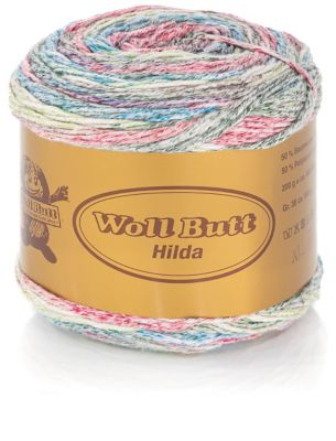 Woll Butt Hilda Garn-Set. Strapazierfähig, weich und angenehm zu tragen – dieses Garn macht alles mit! Mit einem Mix aus 50 % Baumwolle und 50 % Polyacryl überzeugt Woll Butt Hilda durch Balance: Es fühlt sich weich und angenehm an, bleibt dabei aber formstabil, leicht und unkompliziert in der Pflege. Ideal für luftige Projekte mit Wohlfühlfaktor. Das extragroße 200-Gramm-Knäuel bringt nicht nur reichlich Material mit, sondern auch direkt Inspiration: Auf der Banderole finden Sie die Anleitung für eine stylishe Fransenweste, die garantiert schon bald zum neuen Lieblingsstück avanciert! Die aufregenden Color-Färbungen sorgen beim Stricken für lebendige Farbverläufe wie von Zauberhand. Gleich bestellen und den Farbspiel-Effekt genießen!