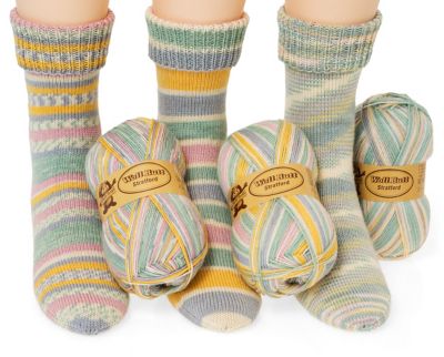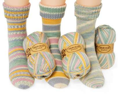 Woll Butt Sockenwollpaket "Stratford". Dieses 4-fädige Strumpfgarn zeichnet sich durch den weichen, angenehmen Griff, hohen Tragekomfort und gute Hautverträglichkeit aus. Im Sommer schenkt es angenehme Kühle dank der darin enthaltenen Viskose (Bambus). Die strapazierfähige Schurwoll-Mischung mit Superwash-Ausrüstung ist formstabil, waschmaschinenfest, temperaturausgleichend und natürlich filzfrei. Dieses Sparpaket enthält Wolle für 3 Paar Socken in Grün-color mit verschiedenen Designs.