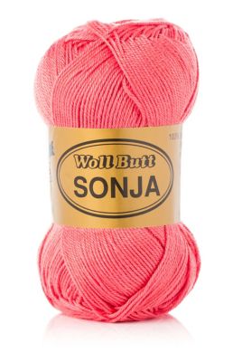 Woll Butt Sonja. Dieses hochwertige 4-fach verzwirnte Baumwollgarn (mercerisiert, gasiert) ist sehr strapazierfähig, temperaturausgleichend und hautangenehm. Zudem erhält es durch das Mercerisieren und Gasieren einen seidig zarten Glanz. Jegliche Mustervariationen kommen bei diesem glatten Material besonders gut zur Geltung. Ein Universalgarn für viele Möglichkeiten!