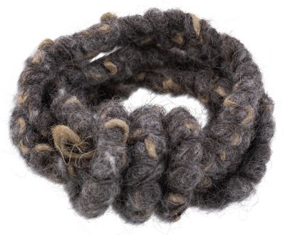 Wollkordel mit Jutekern, Farbe: grau-meliert, Stärke: ca. 10 mm, Länge: 2 m. Material: 100 % Schurwolle.